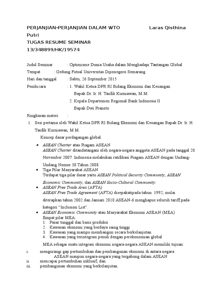 Setelah mempelajari fungsi dan format resume rapat saatnya Anda mengetahui contoh resume rapat yang benar. Dimana biasanya seminar ini akan dibagi dua sesi apabila pemateri lebih dari 1 orang. RESUME SEMINAR NASIONAL NEUROMUSCULAR TAPING Peluang Tantangan dalam Praktik di Keperawatan Indonesia KHARISMA HADI NIM.