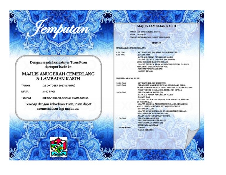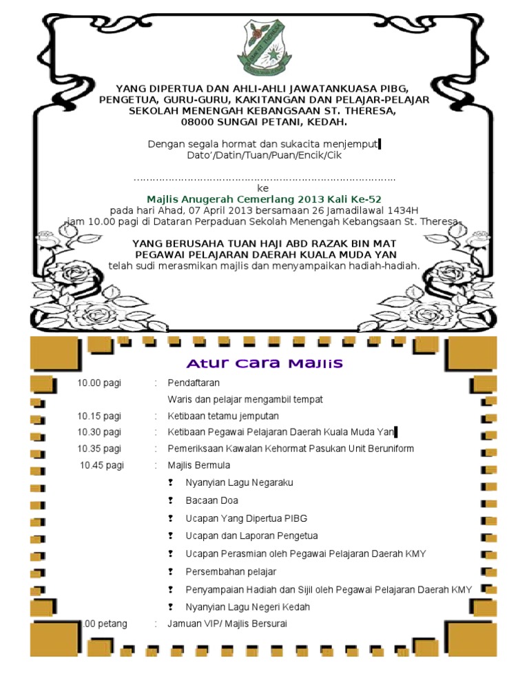 Kumpulan Contoh Surat Jemputan Majlis Perpisahan yang Baik dan Benar 2019. Tulisan Logo Font. Kad jemputan majlis anugerah cemerlang.